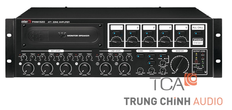 Inter-M PAM-520 là một thiết bị khuếch đại công suất kèm mixer xử lý tín hiệu âm thanh được ứng dụng rộng rãi trong các công trình trường học, spa, nhà hàng, resort, phòng họp hội nghị hội thảo, phòng gia đình….Amply có thể kết nối h