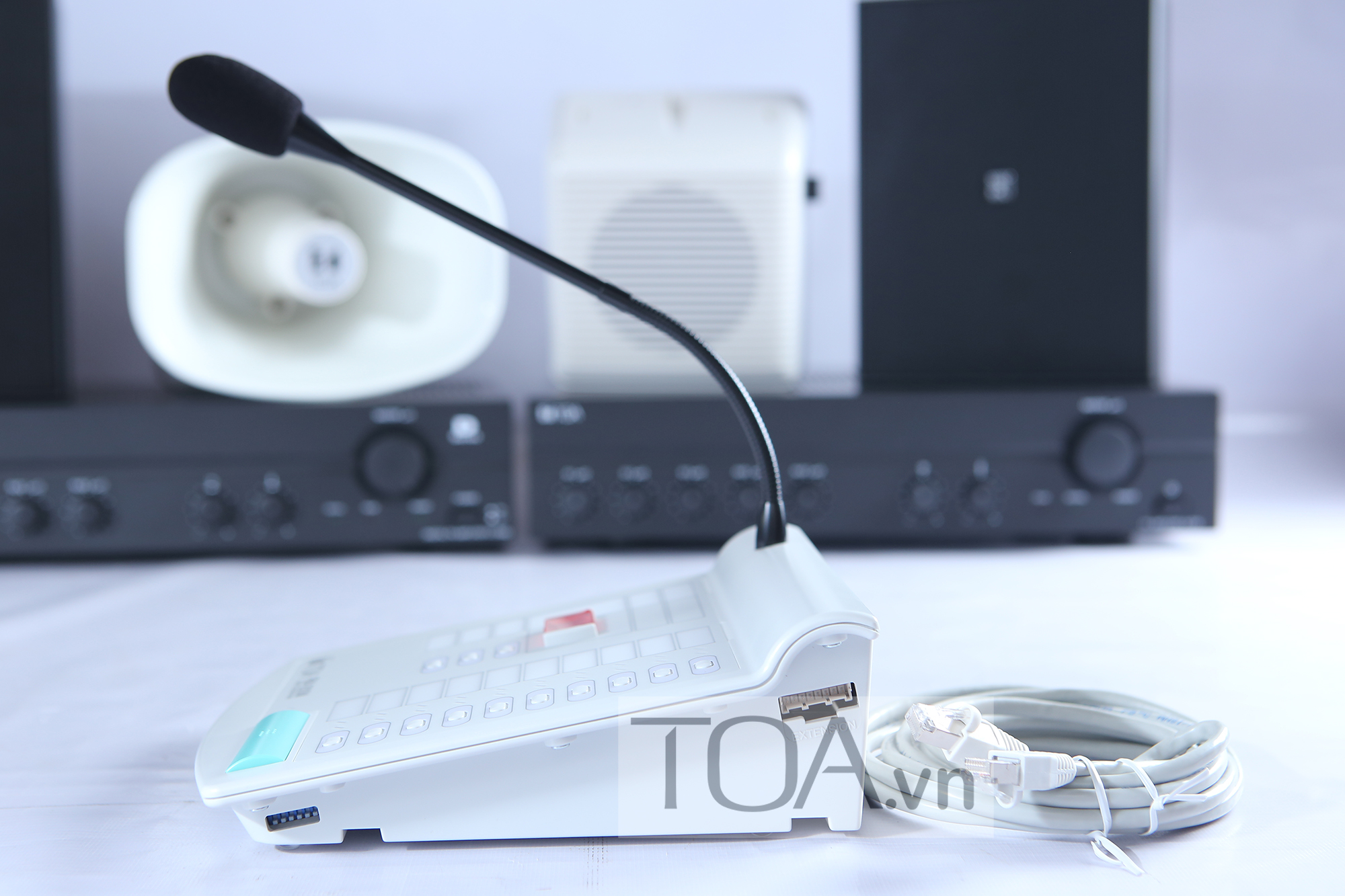 Hướng dẫn sử dụng micro TOA RM-210 trong hệ thống âm thanh thông báo di tản TOA VM-2000. TOA RM-210 đóng vai trò là một thiết bị micro điều khiển từ xa, được sử dụng để kết hợp với tăng âm TOA VM-2210, TOA VM-2240, TOA EV-200M, SV-200MA…Để c
