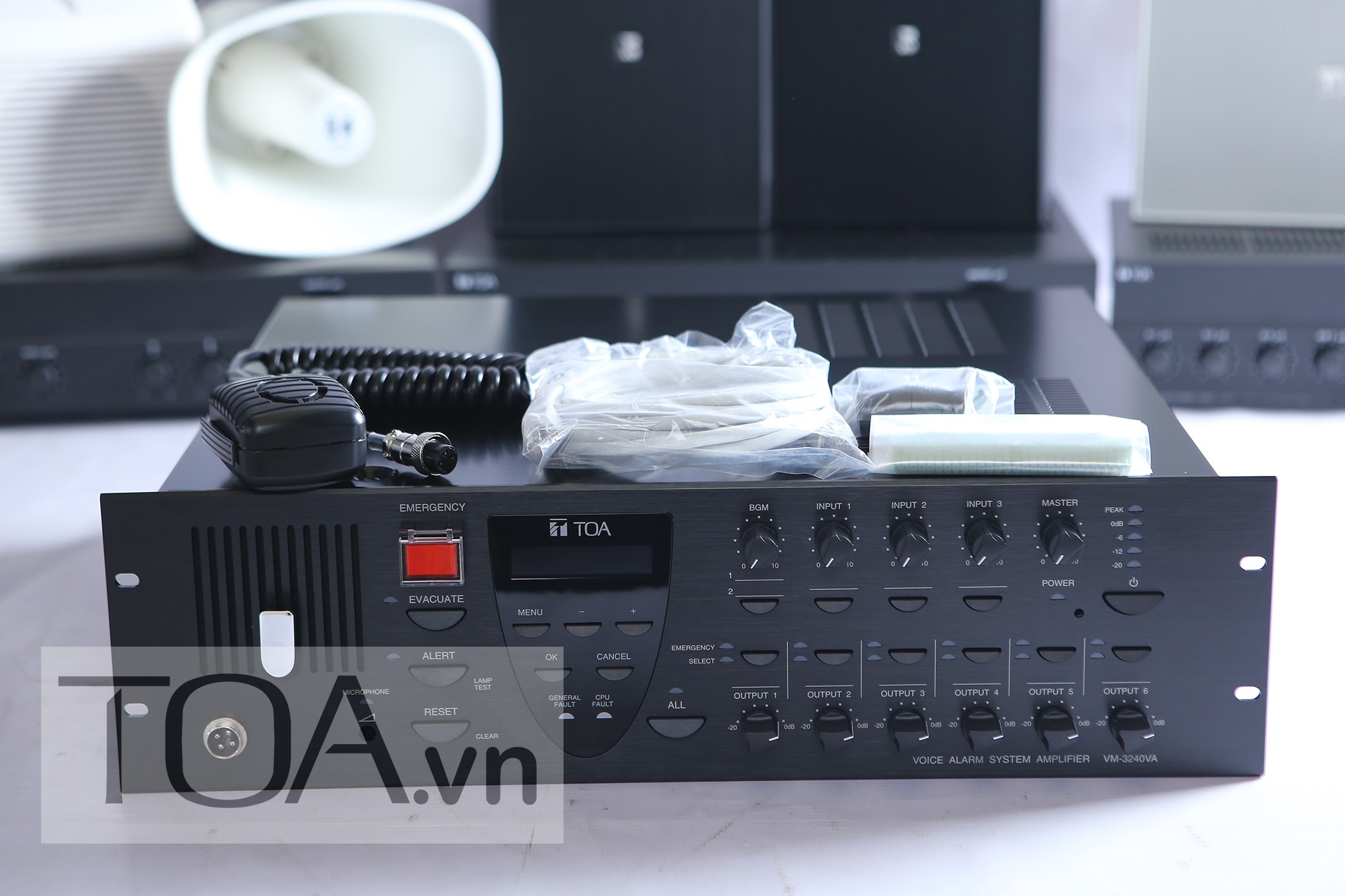 Hướng dẫn sử dụng ampli TOA VM-3240VA trong hệ thống di tản VM-3000. TOA VM-3240VA là một thiết bị tiêu chuẩn EIA-Rack cung cấp 6 đầu ra loa. Nó sử dụng kết hợp với RM-200M, VP-2000…cho phép người dùng phát sóng chung ngoài ra sẽ giúp người d�