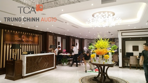 TCA - Trung Chính Audio chịu trách nhiệm thi công hệ thống âm thanh thông báo nhạc nền cho khách sạn The Q Hotel tại Hà Nội. Hệ thống sử dụng toàn bộ thiết bị âm thanh thông báo JBL made in USA bao gồm loa gắn tường, micro để bàn, mixer amply, b