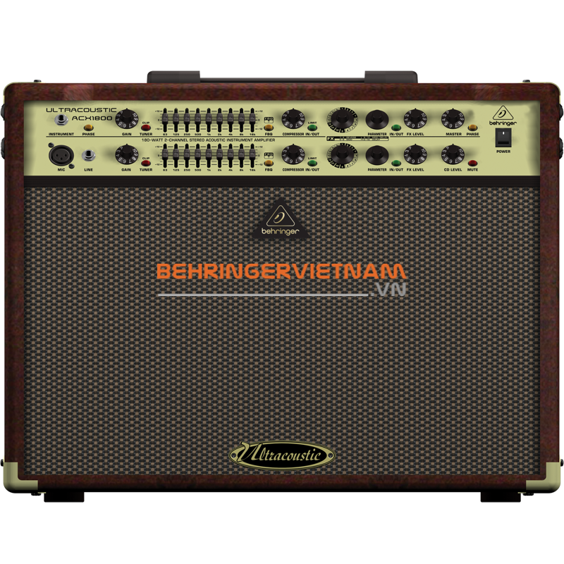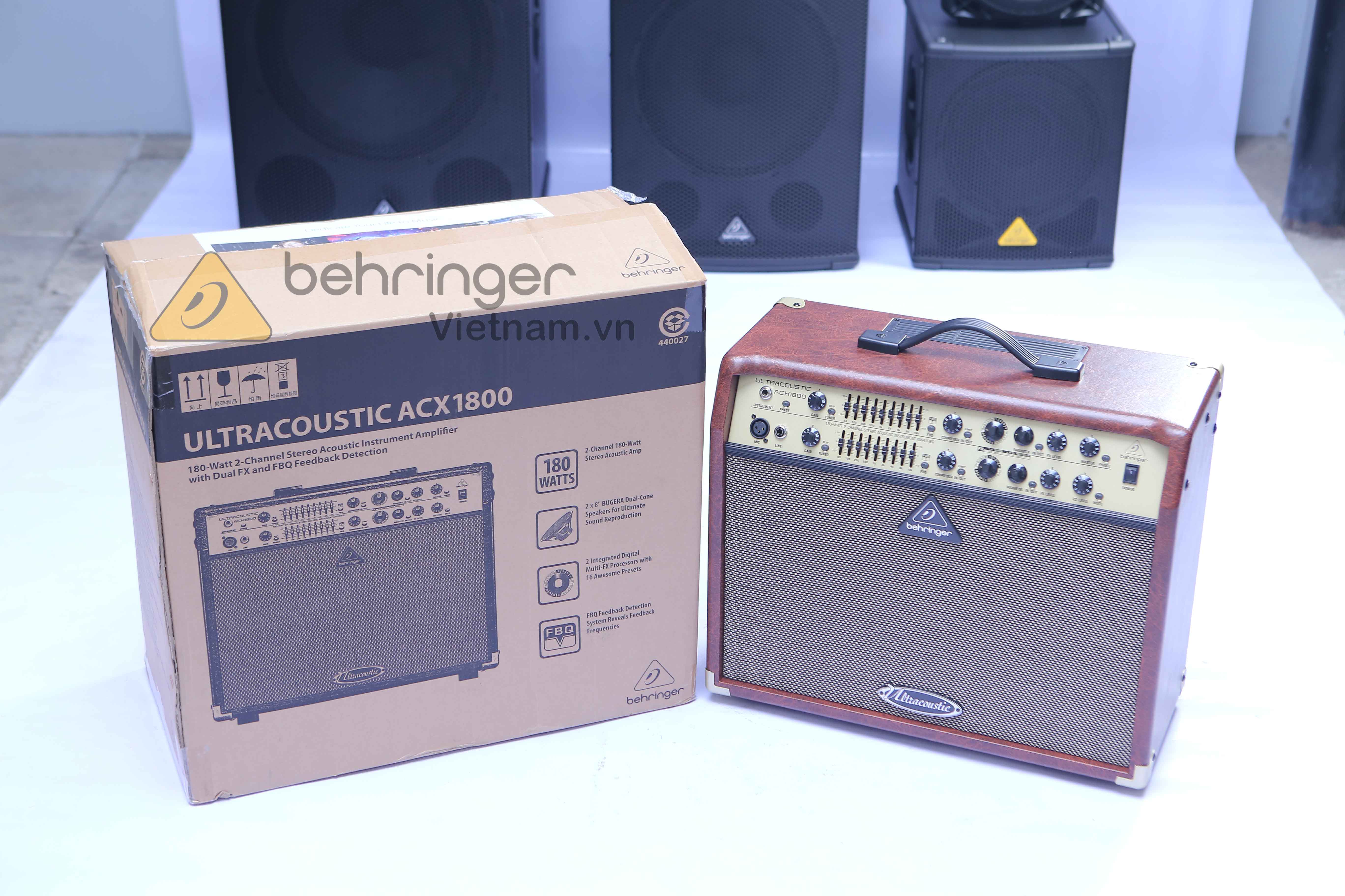 Behringer ACX1800 là một bộ khuếch đại 180W, 2 kênh có các loa 2 - 8 "cho độ trung thực âm thanh trung thực. Bộ ampli ULTRACOUSTIC bao gồm 2 bộ xử lý FX độc lập và EQ đồ hoạ 9 băng tần cực mạnh cho mỗi kênh cộng với FBQ mang tính cách mạng Hệ thống phát hiện thông tin phản hồi giúp giảm phản hồi ngay lập tức Ngoài ra, ACX1800 còn có các nút tắt, chèn trên mỗi kênh và một đường XLR cân bằng âm thanh stereo với công tắc nâng đất để có thể kết nối trực tiếp vào bảng điều khiển máy trộn. Cho các hiệu ứng bật / tắt và chuyển mạch kênh.
