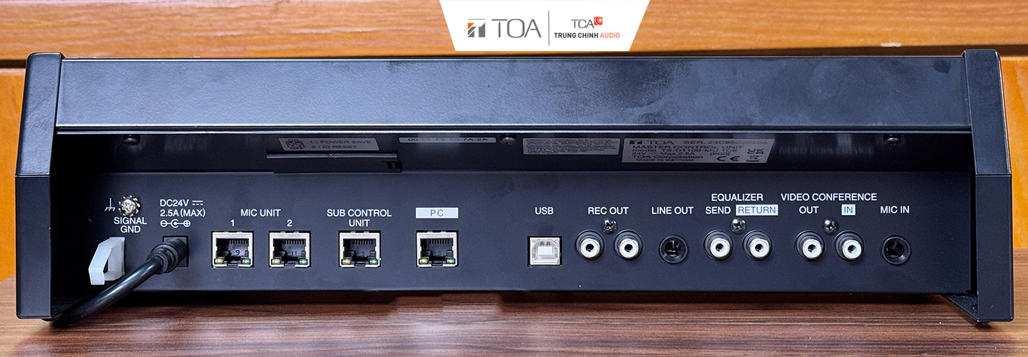 Bộ điều khiển trung tâm TOA TS-D1100 cung cấp nhiều tùy chỉnh liên quan đến âm thanh, bao gồm các ngõ vào và ngõ ra âm thanh qua giắc cắm Ø6.3mm và RCA, cho phép kết nối linh hoạt với các thiết bị âm thanh khác. Các tùy chọn về điều chỉnh âm lượng của micro, tai nghe và loa giám sát giúp người vận hành dễ dàng tối ưu hóa âm thanh cho buổi hội thảo. Ngoài ra, hệ thống còn cho phép cài đặt tự động tắt micro khi không sử dụng, giúp tránh tình trạng nhiễu âm không mong muốn.