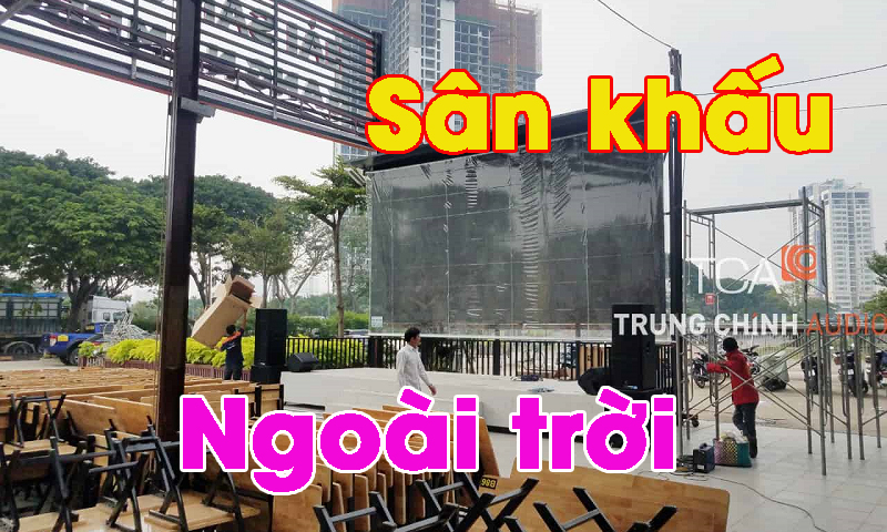 Dàn âm thanh ánh sáng sân khấu hội trường ngoài trời cung cấp cho dự án lắp đặt âm thanh UBND HĐND huyện Cần Giờ do TCA thi công lắp đặt, dàn loa sân khấu hội trường chuyên nghiệp