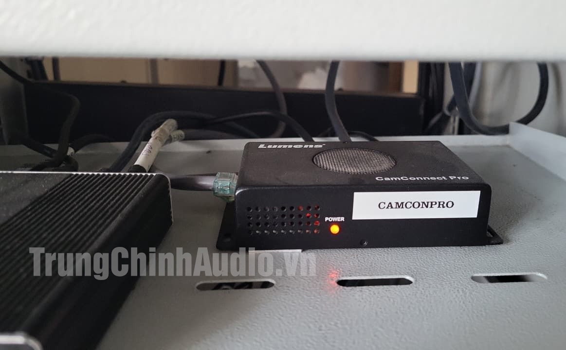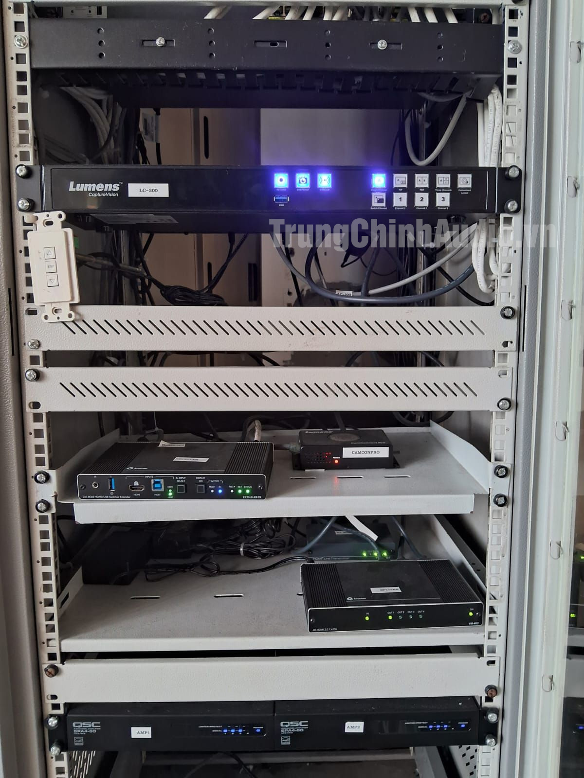 Trong tủ máy, Lumens LC100 đóng vai trò là trung tâm ghi hình/ghi bài giảng (lecture capture) của cả phòng.
