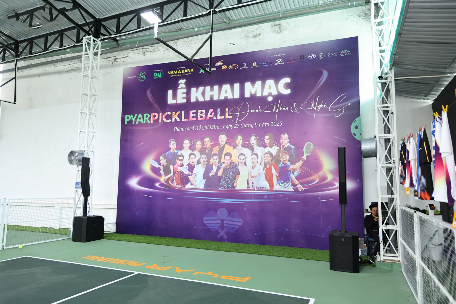 Setup sân khấu band nhạc biểu diễn trong lễ khai mạc giải thể thao pickeball sử dụng các loa di động EV EVOLVE 90 tạo trọn vẹn không khí sôi động của buổi lễ