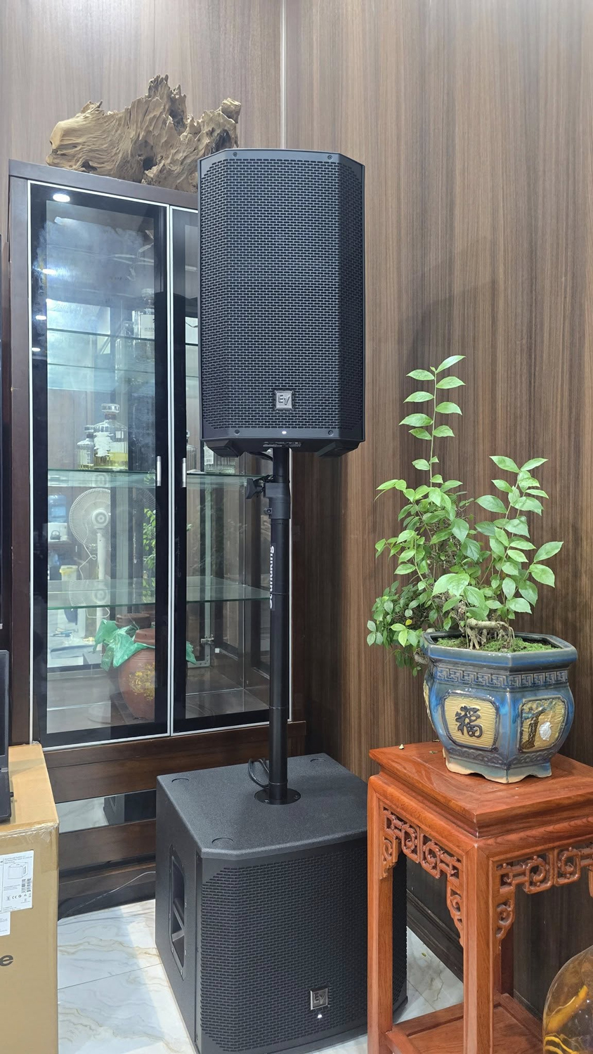 Combo dàn karaoke giải trí gia đình với loa di động Electro-Voice EVERSE 12 đóng vai trò là loa full-range và bổ trợ dải trầm bởi loa subwoofer liền công suất EV ELX200-12SP (bass 30cm)