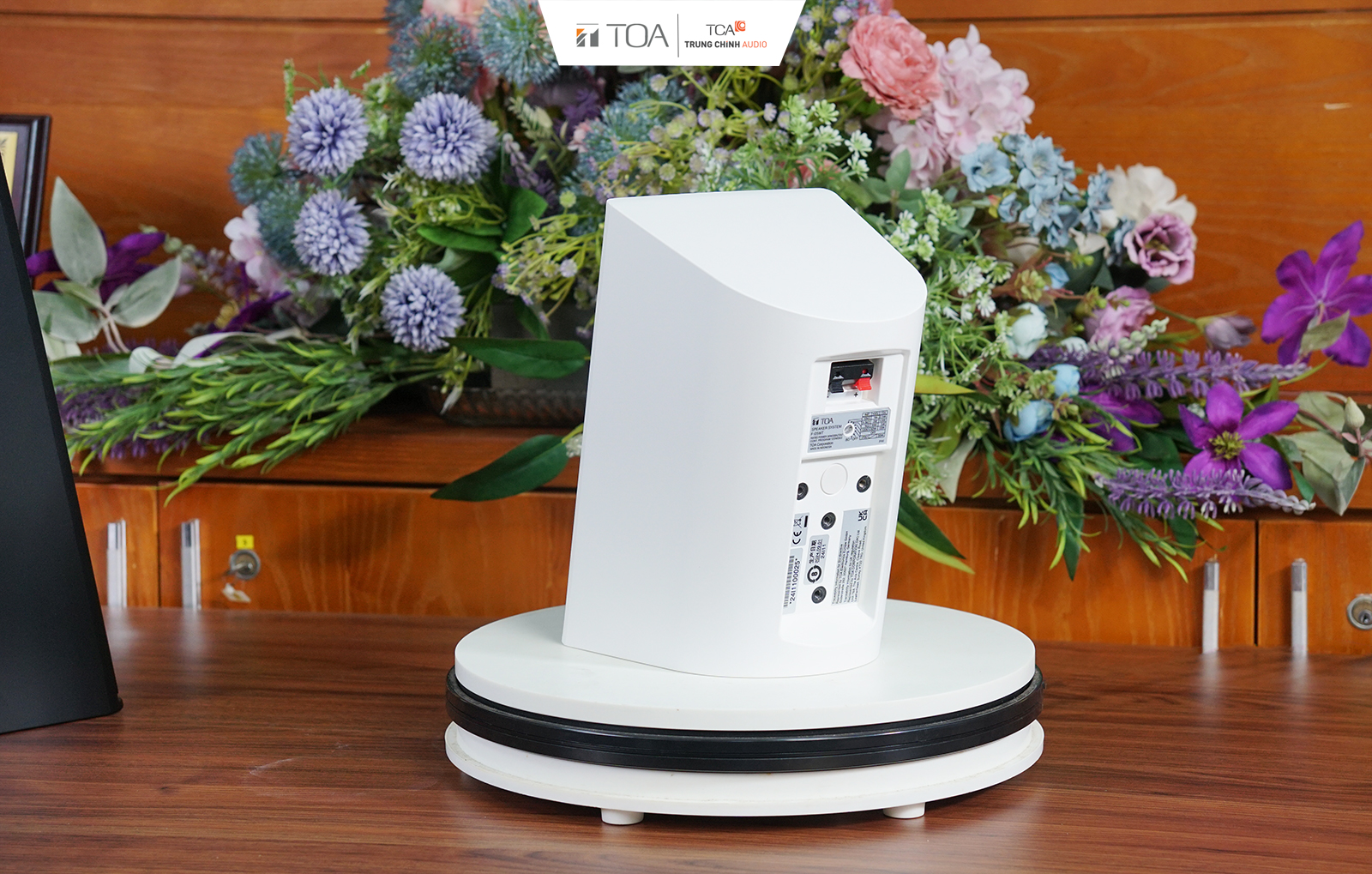 Phụ kiện đi kèm bao gồm giá treo loa, đế treo, nắp đế treo, và bộ ốc vít cố định. Phụ kiện tùy chọn gồm: