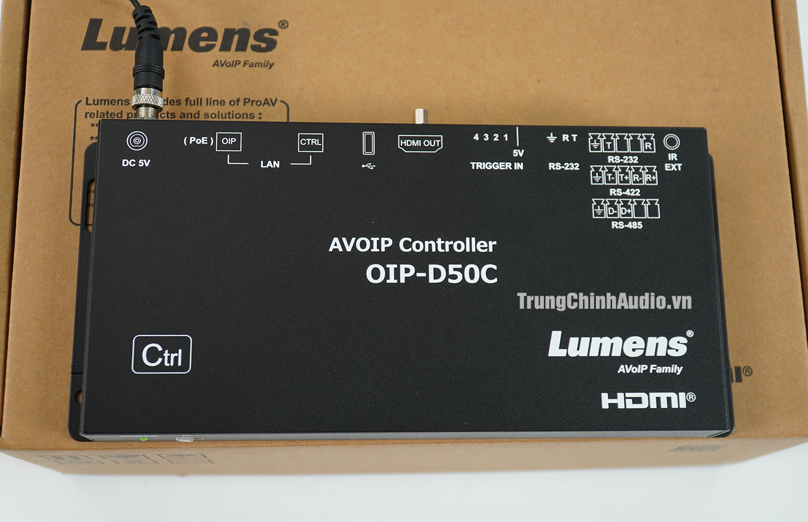 Một điểm đáng giá khác của OIP-D50C là khả năng tối ưu trải nghiệm thi công – tích hợp trong hệ ProAV. Thiết bị hỗ trợ các cổng điều khiển phổ biến như LAN, RS-232, IR và Trigger, phù hợp để kết nối với hệ thống điều khiển trung tâm, nút bấm ngữ cảnh, cảm biến hoặc kịch bản tự động hoá. Khi cần lắp đặt nhanh, gọn dây, bạn có thể cấp nguồn qua PoE, giảm đáng kể thời gian thi công và rủi ro đấu nối.