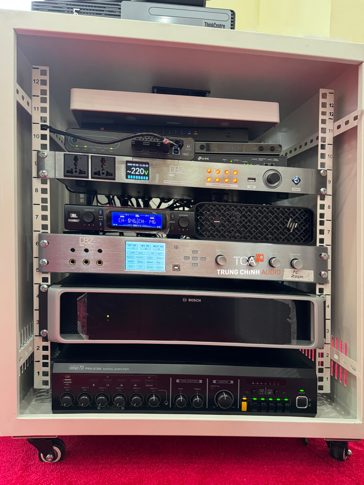 Ở tầng 5, nhu cầu không chỉ dừng ở việc nghe rõ trong phòng, mà là nghe – nhìn – tương tác trọn vẹn với các điểm cầu từ xa. Và đây là chỗ mà Trung Chính Audio thường thấy nhiều doanh nghiệp gặp vấn đề: đầu tư không ít, nhưng khi họp online thì…