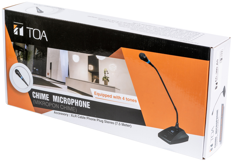 Micro thông báo TOA EC-380 là loại micro thông báo điện động chất lượng cao, định hướng đa hướng. Có công tắc nhấn nói/tắt. Micro có chuông 4 âm sắc,sử dụng nguồn linh hoạt Pin hoặc Adaptor DC 9-24V. Khác với các mẫu micro khác, TOA EC-380 l
