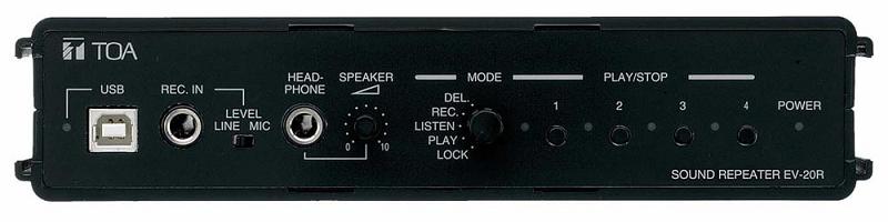Bộ GHI - PHÁT âm thanh TOA EV-20R có thể ghi âm và phát lại được 4 tin nhắn thông báo khác nhau với thời gian lên đến 3 phút. Ngoài ra, TOA EV-20R cũng có bộ hẹn giờ cho phép phát lặp lại thông báo vào các khoảng thời gian khác nhau