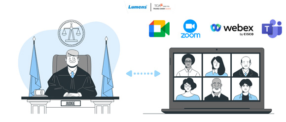 Hệ thống Lumens tương thích với các nền tảng họp phổ biến như Zoom, Webex, Microsoft Teams, Google Meet, cho phép nhân chứng, luật sư hoặc bị cáo tham gia trực tuyến an toàn từ xa, đặc biệt trong giai đoạn phòng dịch hoặc khi di chuyển khó khăn.